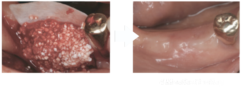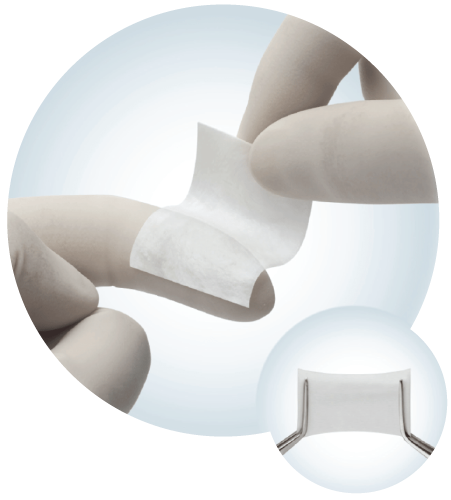 Straumann XenoFlex can be placed into the defect in one piece using tweezers, shortening surgery time.
