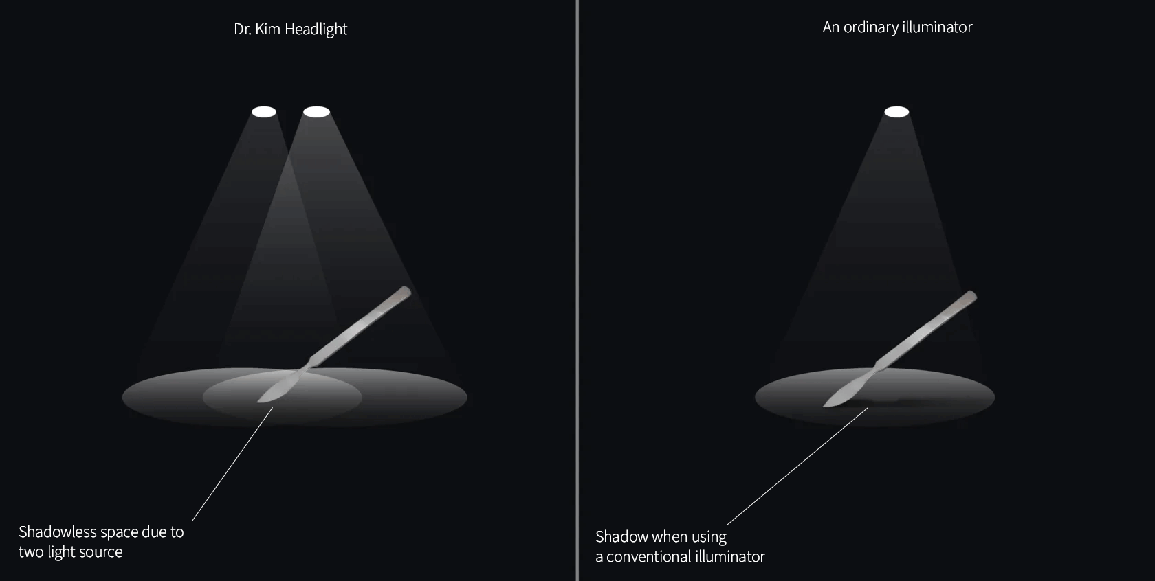 Shadowless effect – due to two light sources