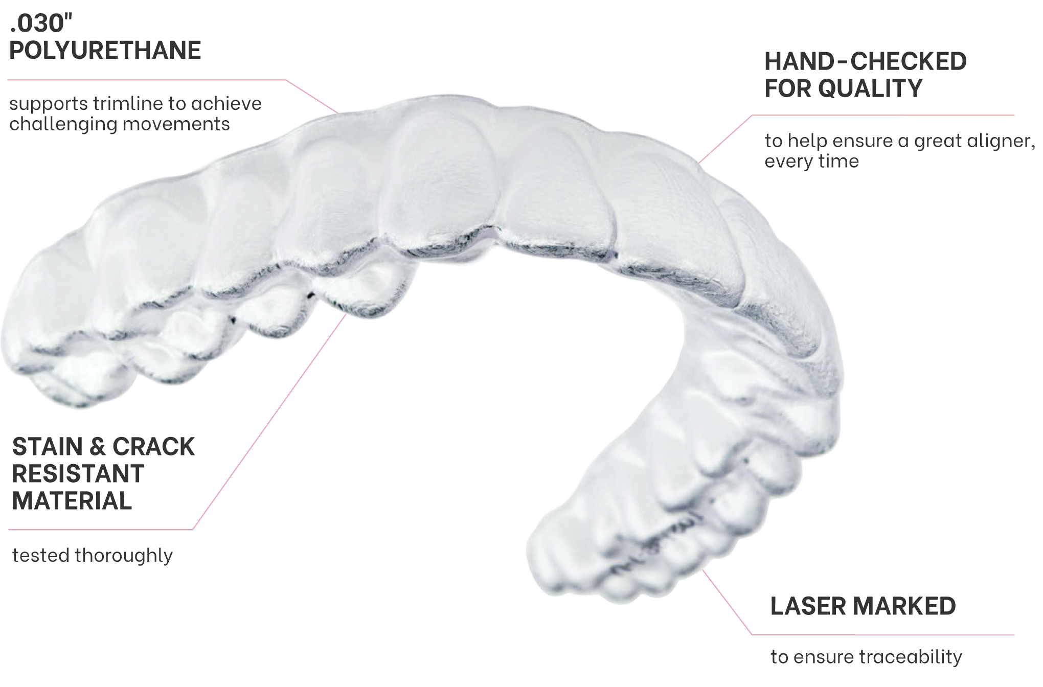 From our proprietary ClearQuartz™ tri-layer material, to the technology and design processes that shape it, to the clinical features that customize it, our premier aligner provides the ultimate orthodontic tool for your practice.