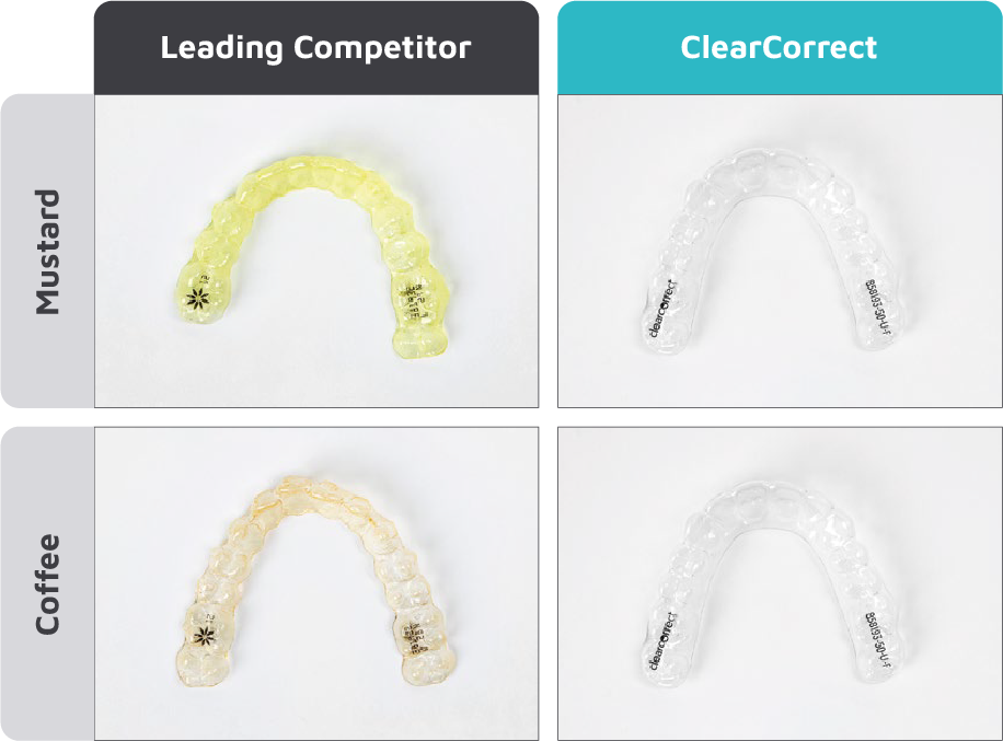 Another feature your patients will love: ClearCorrect aligners have been proven to be more stain-resistant than the leading aligner brand.